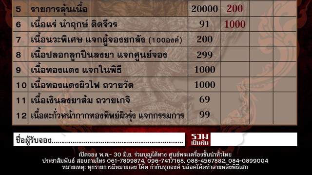 สนใจร่วมบุญ ดูใบรายการจอง และ