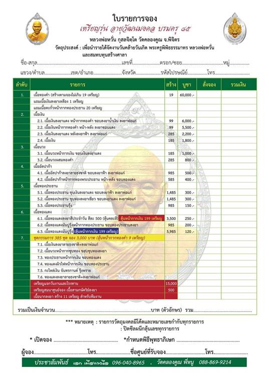 รายการ 5.2 เนื้อทองพระประธาน ชุบทองลงยาเขียว ขอบลงยาแดง ลงยาพ่อแก่ ราคาจอง 300.-บาท มียอด = 5