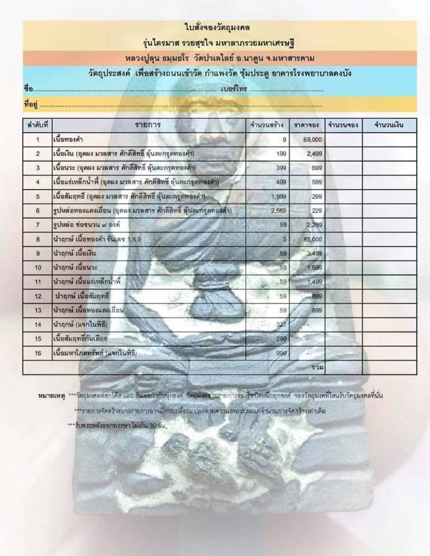 รายการ 10.นำฤกษ์ เนื้อนวะโลหะ ราคาจอง 1,699.-บาท มียอด = 2