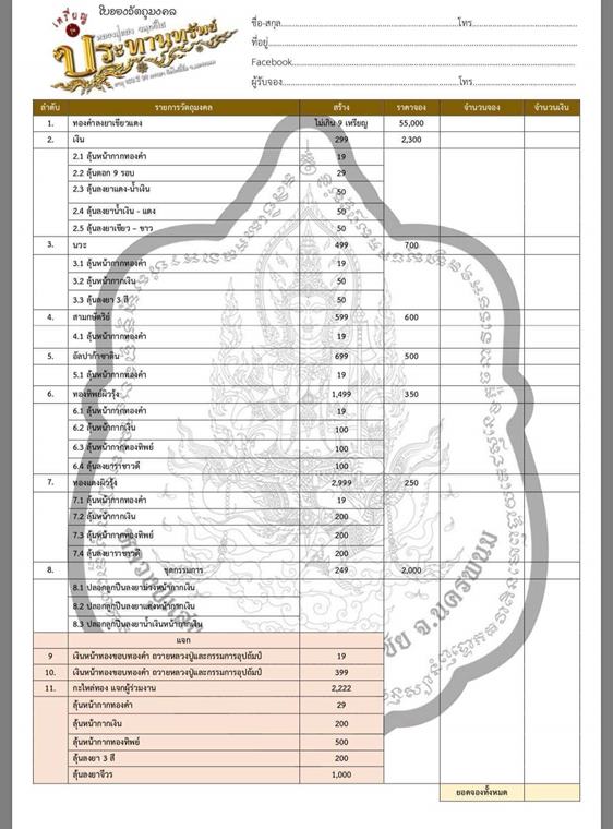 รายการ 8.ชุดกรรมการ (รับพระ 3 เหรียญ) ราคาจอง 2,000.-บาท มียอด= 2