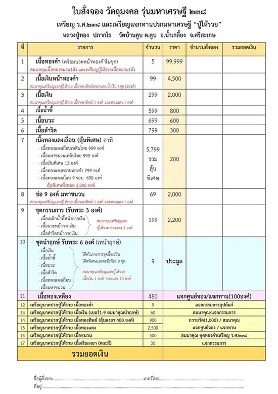 รายการที่ 3 เนื้อเงิน (สมนาคุณเหรียญแจกปู่ให้รวย2เหรียญ) มียอด 1 เหรียญๆ ละ 2,800 บาท