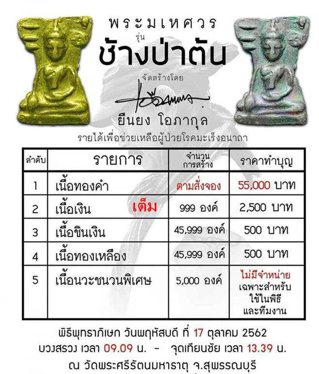 2.เนื้อเงิน สร้าง 999 องค์ บูชา 2,500 บาท ยอดเต็ม