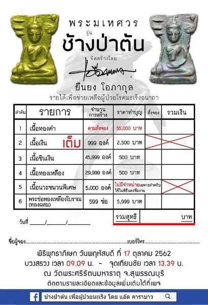 4.เนื้อทองเหลือง มี 10 องค์ๆละ 500 บาท