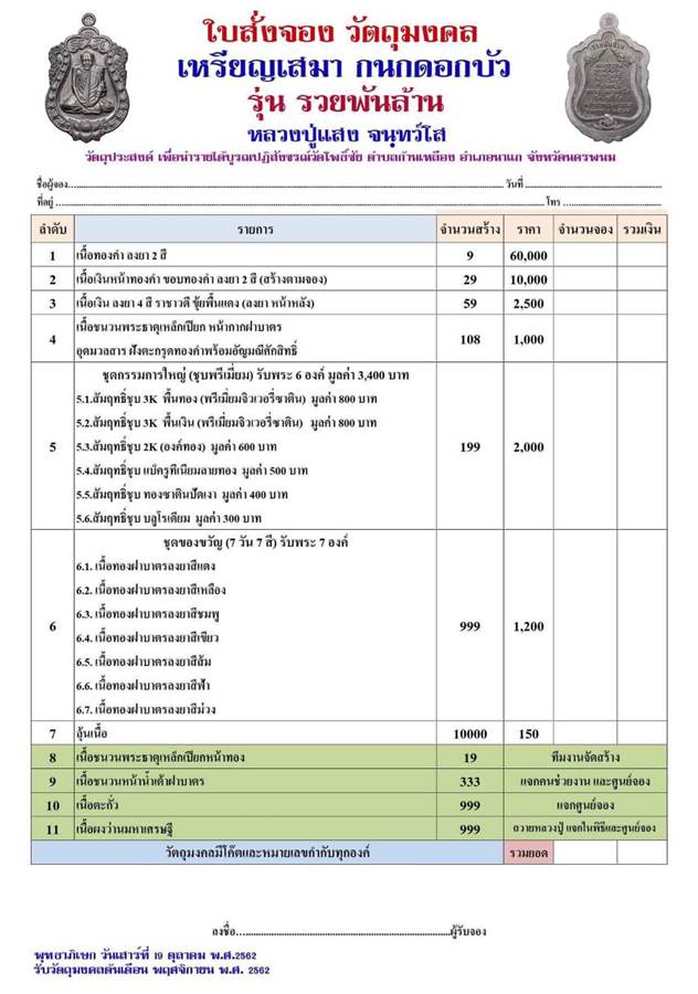รายการ 5.ชุดกรรมการ (รับพระ 6 เหรียญ) ราคาจอง 2,000.-บาท มียอด = 4