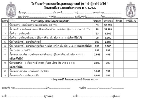 เปิดรับจองเหรียญเสมาฉลุยกองค์ รุ่น ปาฎิหารย์ไอ้ไข่ วัดเสมาเมือง จังหวัดนครศรีธรรมราช พุทธศิลป์สวยงาม เปิดรับจองตามรายการราคาจองทุกรายการครับ