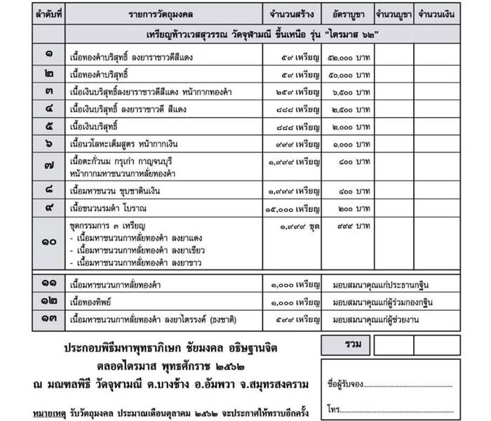 จองรายการที่10.ชุดกรรมการ (รับพระ 3 เหรียญ)2000บาท มียอด= 1 ชุด