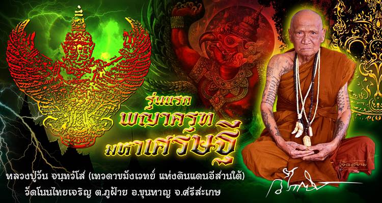 *** เปิดจอง// พญาครุฑ รุ่นแรก มหาเศรษฐี หลวงปู่วัน จนฺทวํโส วัดโนนไทยเจริญ ต.ภูฝ้าย อ.ขุนหาญ จ.ศรีสะเกษ