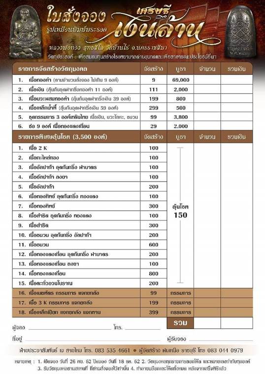 รายการ 6.ช่อ 9 องค์ เนื้อทองแดงเถื่อน ราคาจอง 2,000.-บาท มียอด= สอบถาม