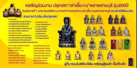 เป็นศาลเจ้าประจำเมือง แห่ง จังหวัดสายบุรี สังกัด มณฑลปัตตานี ในอดีต..ปัจจุบัน ศาลเจ้าแห่งทรุดโซม เป็น อันมาก กรรมการศาลเจ้าไม่มี งบประมาณ จึงได้จัดสร้าง องค์ เล่าเอี๊ยะกง เทพผู้ยิ่งใหญ่แห่งเมืองสายบุรี เพื่อให้เช่าบูชา สนใจ จองในกระทู้ได้เลย ให้ไวครับ สร้าง หลักร้อยองค์ เท่านั้น หรือ โทร 082-8045324 |