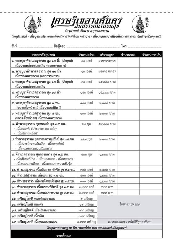 รายการ 14.เนื้อทองมหาชนวน สูง 3.5 ซม. ราคาจอง 599.-บาท มียอด= 14