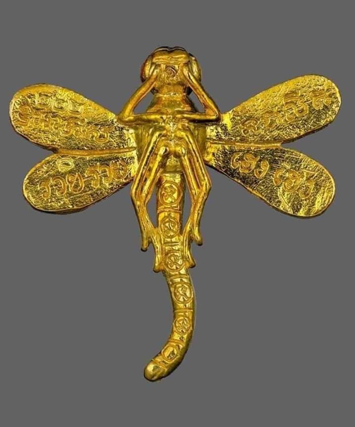แมลงปอเรียกทรัพย์ รุ่นแรก ขนาด ๑ นิ้ว × ๑.๕ นิ้ว เครื่องรางเรียกทรัพย์ ในเรื่องของ แมลงปอเรียกทรัพย์ (จิตวิญญาณประเภทหนึ่ง ไม่มีวันตาย อยู่กับธรรมชาติ) ด้วยแมลงปอเป็นสัตว์ที่บิน