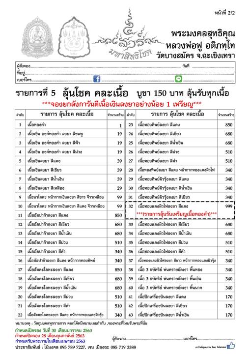 รายการ 5.ลุ้นโชค คละเนื้อ ราคาจอง 150.-บาท มียอด= 50