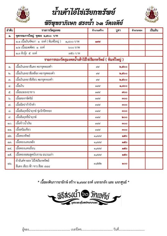รายการ 1.เนื้อเงินลงยาสีแดง ตะกรุดทองคำ ราคาจอง 2,500.-บาท มียอด= 1