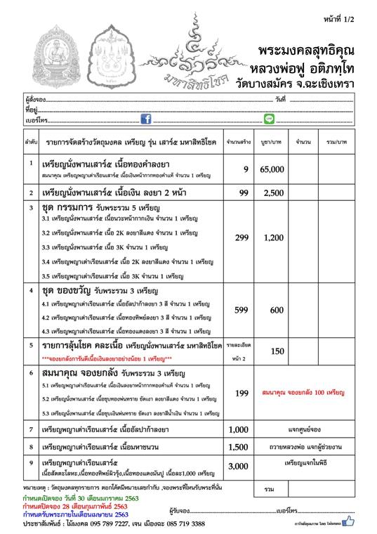 *** เปิดจอง// เหรียญนั่งพาน "เสาร์ ๕ มหาสิทธิโชค" หลวงพ่อฟู อติภทฺโท วัดบางสมัคร จ.ฉะเชิงเทรา