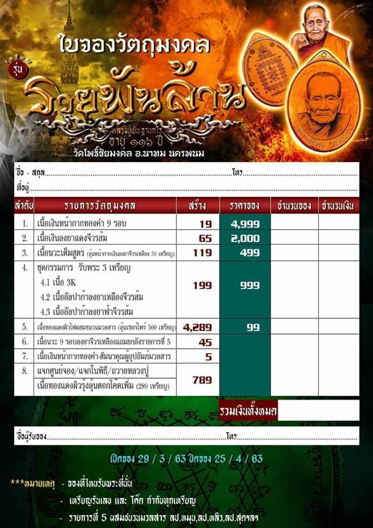 รายการ 4.ชุดกรรมการ (รับพระ 3 เหรียญ) ราคาจอง 999.-บาท มียอด= 5