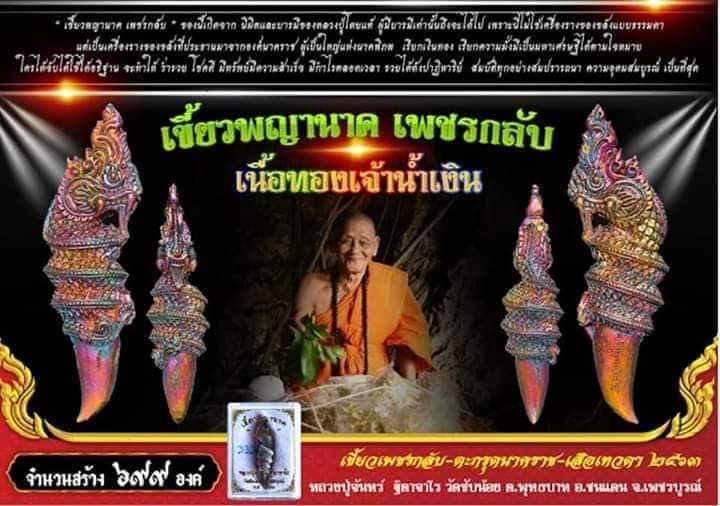 เขี้ยวพญานาค ด้วยอิทธิฤทธิ์ของ เขี้ยวพญานาคที่เป็นของกายสิทธิ์ กว่าจะได้ชนวน มวลสาร ที่ได้มา ไม่ใช่ของธรรมดา และไม่มีใครจะได้ง่ายๆ เขี้ยว เกาะเกี่ยวสิ่งใด นำทุกอย่างมาให้ เป็นเงินเป็นทอง มั่งมีเงิน มั่งมีทรัพย์ ร่ำรวย ยิ่งพวกทำมาค้าขาย เสี่ยงโชค แสวงลาภ จะมีแต่เพิ่ม มีกำไร มากมายมหาศาล เงินเข้าทรัพย์เข้ามากไม่รู้เนื้อรู้ตัว