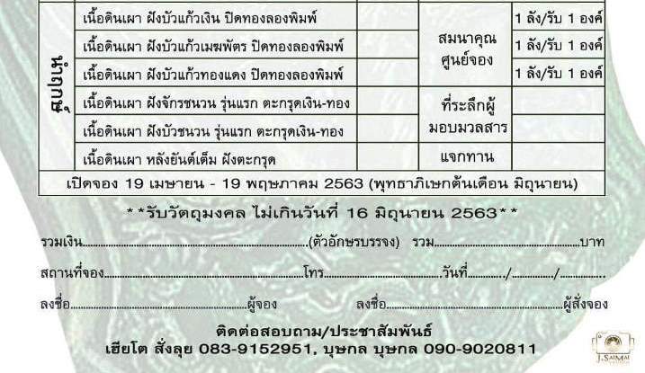 ศูนย์จอง ต้อม พุทธคุณ ☎️ 095-5865445