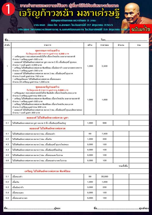 รายการ 1.ชุดกรรมการร่วมสร้าง (รับวัตถุมงคล 28 รายการ) ราคาจอง 2,500.-บาท มียอด = 5