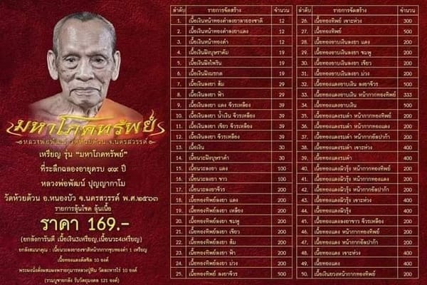 💥 #ลุ้นโชคลุ้นเนื้อ ราคา 169 บาท ยกลังการันตี เนื้อเงิน 3 เหรียญ เนื้อนวะ 4 เหรียญ และรายการหน้ากากและลงยาร่วม70เหรียญ พร้อมสมนาคุณ ยกลัง แจกวัตถุมงคล21องค์ รวมยกลัง รับวัตถุมงคล 121 องค์
