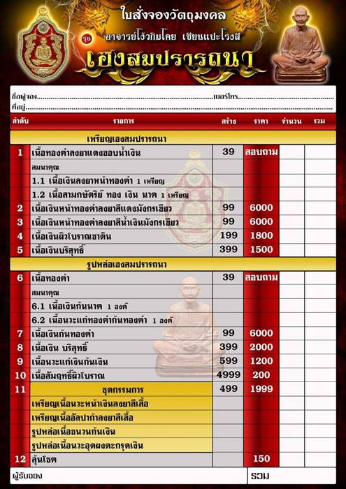 รายการ 11.ชุดกรรมการ (รับวัตถุมงคล 4 รายการ) ราคาจอง 1,999.-บาท มียอด = 5