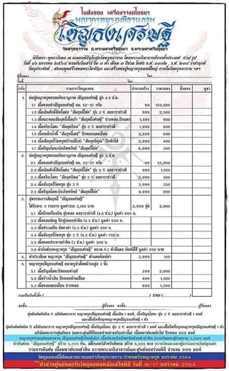 รายการ 3. ชุดกรรมการ (รับวัตถุมงคล 5 รายการ) ราคาจอง 2,000.-บาท มียอด= 3