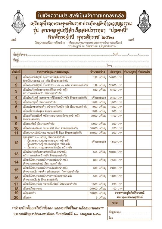 เปิดจอง เหรียญพิมพ์ทรงจำปี รุ่น ปลดหนี้ พระพุทธชินราช-หลังท้าวเวสสุวรรณ หลวงพ่ออิฏฐ์