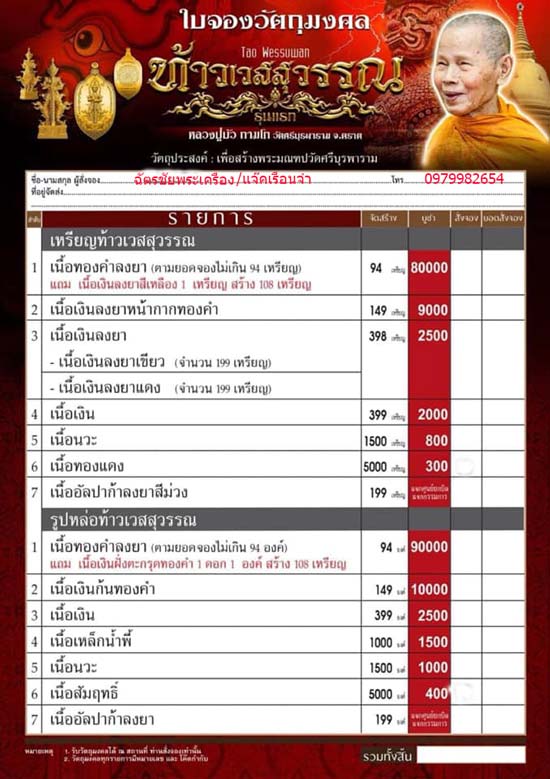 5.รูปหล่อเนื้อเงินก้นทองคำ จำนวน องค์ ราคาองค์ละ 11,500 บาท