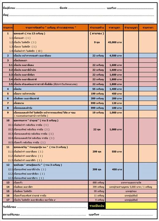 รายการ 12. ชุดปันสุข (รับพระ 3 เหรียญ) ราคาจอง 450.-บาท มียอด= 5
