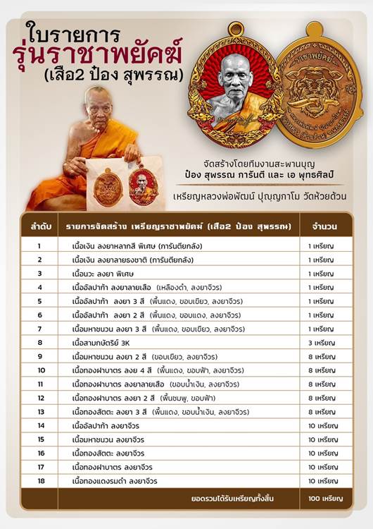 หัวข้อกระทู้ : เปิดจองเหรียญหลวงพ่อพัฒน์ ปุญฺญกาโม วัดห้วยด้วน รุ่นราชาพยัคฆ์ (เสือ2 ป๋อง สุพรรณ)