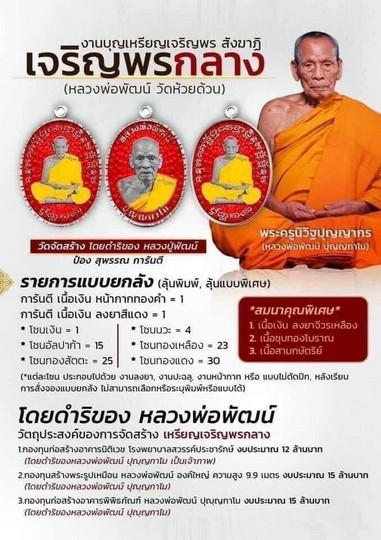 เหรียญเจริญพร สังฆาฏิ (เจริญพรกลาง) หลวงพ่อพัฒน์ วัดห้วยด้วน รายการแบบยกลัง (ลุ้นพิมพ์, ลุ้นแบบพิเศษ)
