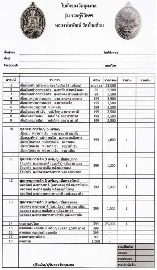 รายการที่ 10 ชุดกรรมการใหญ่ รับพระ 5 เหรียญ หน้ากากเงินลงยาทั้งหมด มียอด 1 ชุดๆละ 3,800 บาท