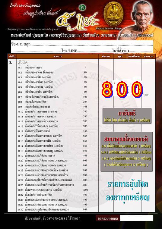 มียอด 15 ลุ้น ๆละ 800 ค่าส่งเหมาๆ 50