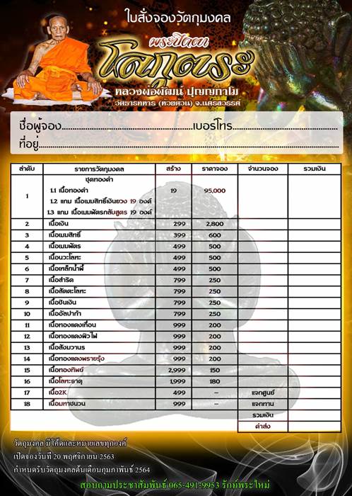 รายการ 8.เนื้อสัตตะโลหะ ราคาจอง 250.-บาท มียอด = 20