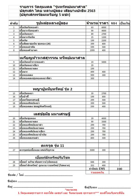 5 เนื้อเงิน สร้าง 199องค์ ราคา 2,200 บ. มียอด 5 องค์
