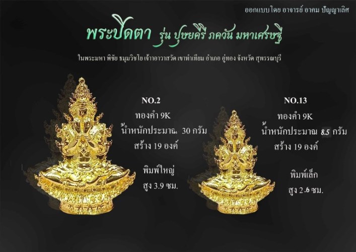 พระปิดตา รุ่นนี้ เป็นงานพุทธศิลป งดงาม นิ่มนวน รุ่นปุษยคีรี ภควัม มหาเศรษฐี เป็นพระปิดตานั่งขัดสมาธิ ยกพระหัตถ์ทั้ง 2 ขึ้นปิดพระพักตร์ เว้นส่วนอื่น เป็นองค์สมมุติของพระอรหันเจ้าพระองค์หนึ่ง อิทธิคุณเน้นหนักไปทาง