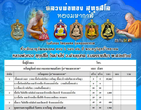 เปิดจองเหรียญเสมา รุ่นทองมหากาฬ หลวงพ่อทองวัดบ้านไร่