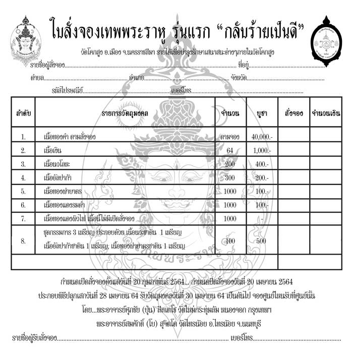 กำหนดปลุกเสกวัตถุมงคลวันที่ 28 เมษา 64