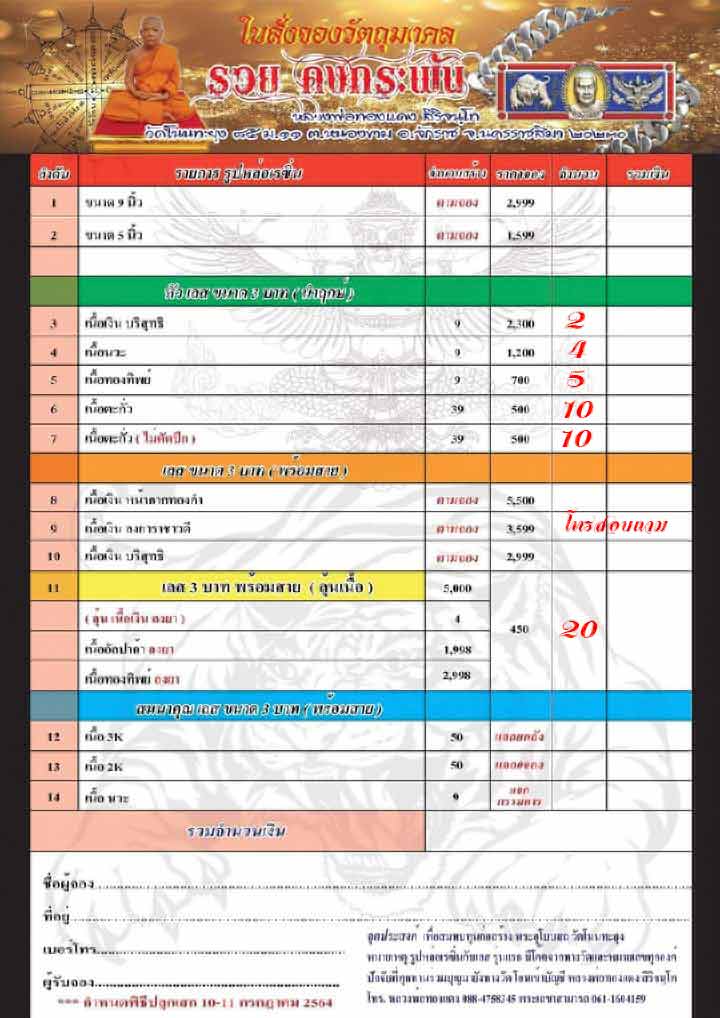 รายการลุ้นมียอด 20 เส้นๆละ 450 บาท