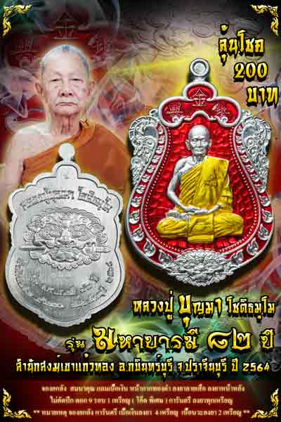 รุ่น มหาบารมี ๘๒ ปี หลวงปู่บุญมา โชติธมฺโม สำนักสงฆ์เขาแก้วทอง อ.กบินทร์บุรี จ.ปราจีนบุรี ปี ๒๕๖๔