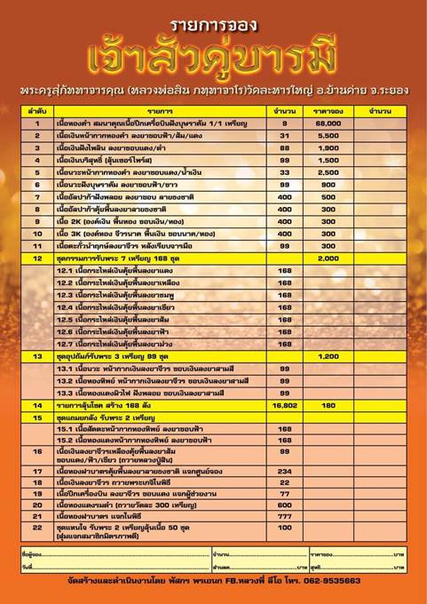 รายการ 13.ชุดอุปถัมภ์ (รับพระ 3 เหรียญ) ราคาจอง 1,200.-บาท มียอด= 5