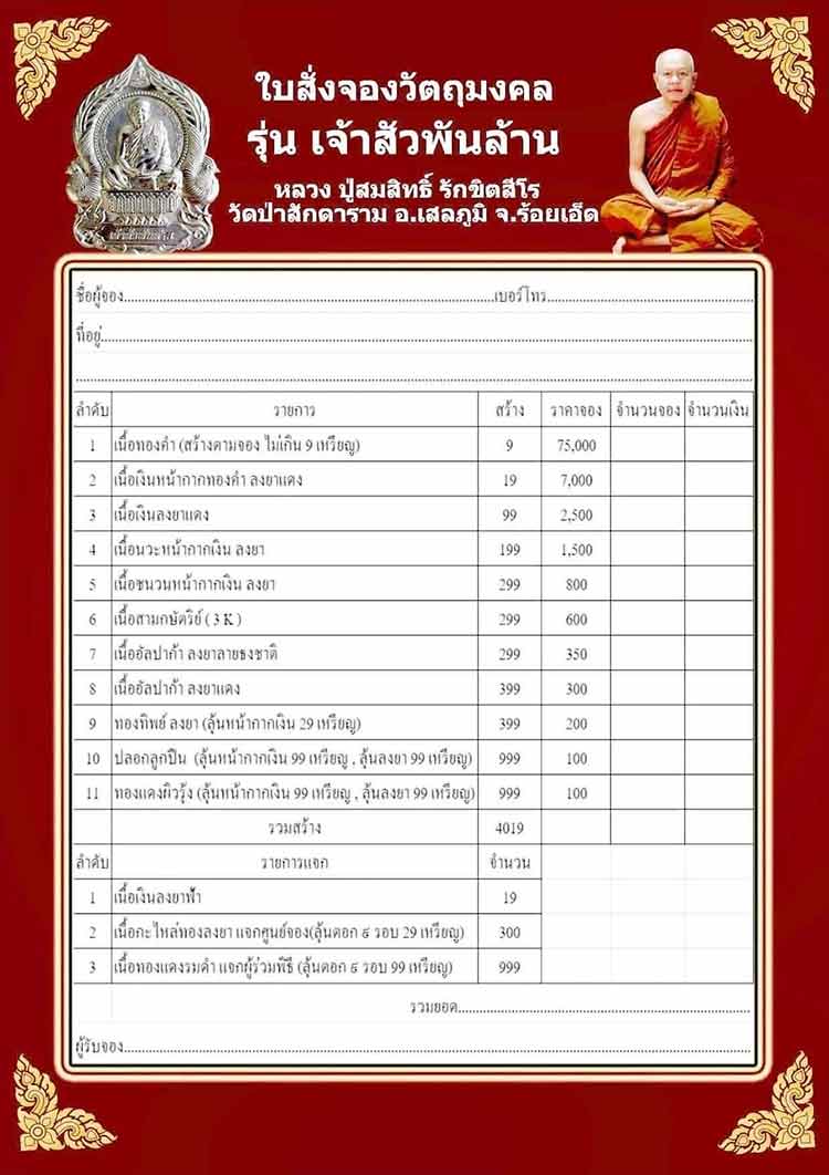 ศูนย์จองลำดับที่ 34 เปิดรับจอง ตามรายการใบสั่งจอง ราคาจอง ทุกรายการ
