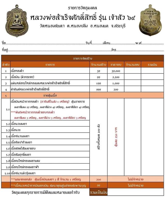 *** เปิดจอง// เหรียญหลวงพ่อสำเร็จศักดิ์สิทธิ์ รุ่น เจ้าสัว ๖๔ วัดหนองสะเดา จ.สระบุรี