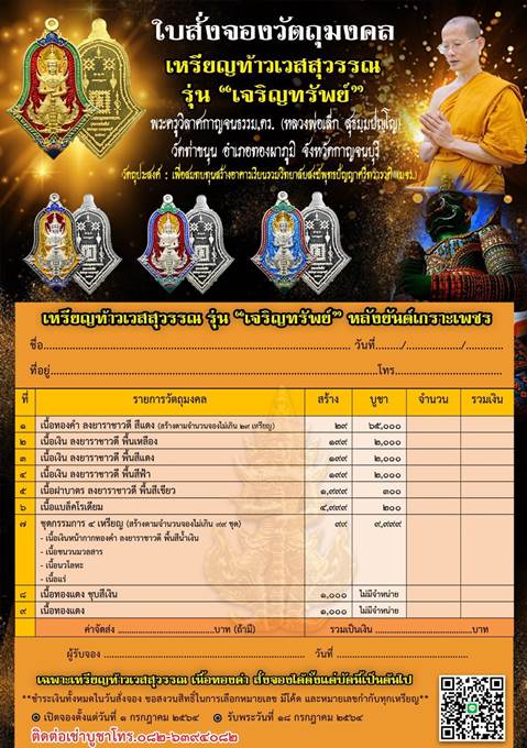 รายการ 1.เนื้อทองคำ ลงยาราชาวดีสีแดง ราคาจอง 65,000.-บาท มียอด= สอบถาม