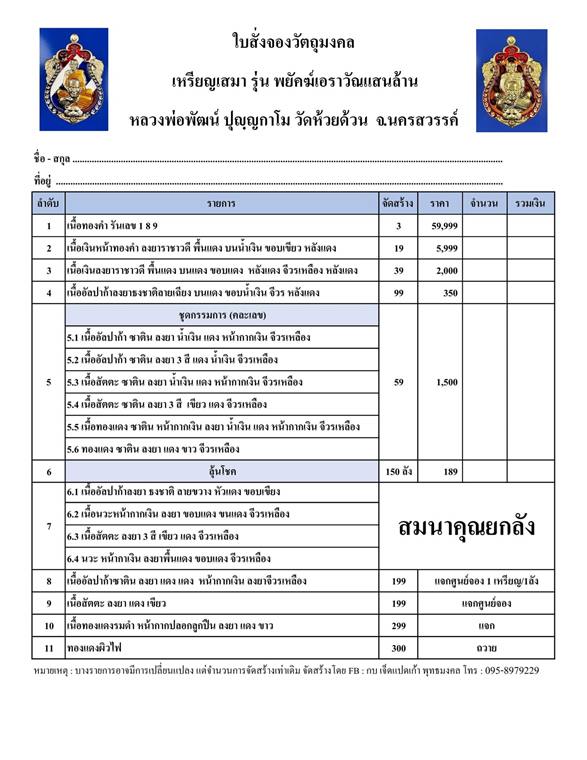 รายการ 5.ชุดกรรมการ (รับพระ 6 เหรียญ) ราคาจอง 1,500.-บาท มียอด= 5