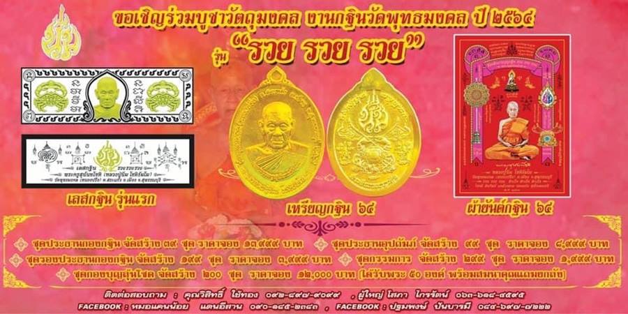 *** เปิดจอง// วัตถุมงคล กฐิน ปี 2564 รุ่น รวย รวย รวย หลวงปู่นิ่ม โชติธมฺโม วัดพุทธมงคล (หนองปรือ) อ.เมือง จ.สุพรรณบุรี