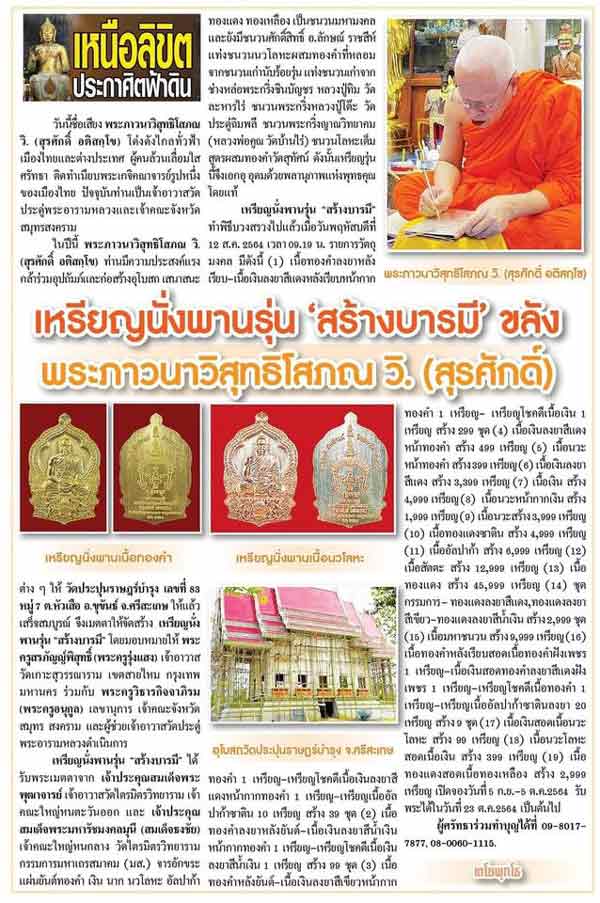 *** เปิดจอง // เหรียญนั่งพานสร้างบารมี พระมหาสุรศักดิ์ (พระภาวนาวิสุทธิโสภณ วิ.) วัดประดู่ พระอารามหลวง อ.อัมพวา จ.สมุทรสงคราม