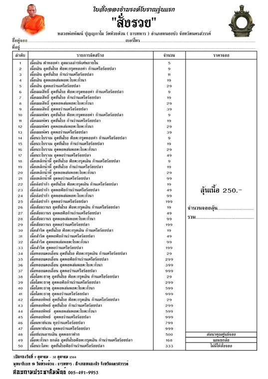 รายการ .ลุ้นเนื้อ ราคาจอง 250.-บาท มียอด= 200