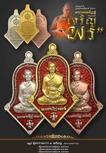 ---เนื้อทองทิพย์ + เนื้อทองแดงขัดเงา + เนื้อชนวนรมดำโบราณ อย่างละ 1 เหรียญ รวม 3 เหรียญ