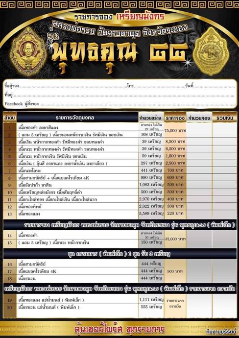 รายการ 4. เนื้อนวะ หน้ากากทองคำ รัศมีทองคำ ขอบทองคำ ราคาจอง 6,500.-บาท มียอด = สอบถาม