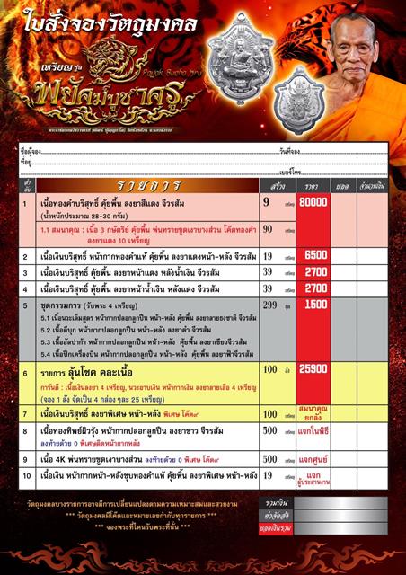 รายการ 2.เนื้อเงินบริสุทธิ์ หน้ากากทองคำแท้ คุ้ยพื้นลงยาแดงหน้า-หลัง จีวรส้ม ราคาจอง 6,500.-บาท มียอด= สอบถาม